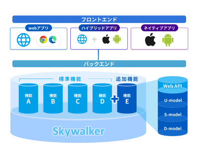 Skywalkerは、新規開発やリプレイスなどをセミオーダー型で行える「ソフトウェアパッケージ」です。